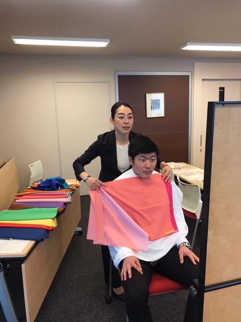 こちらの企業さまでは、新入社員ビジネスマナー研修に、パーソナルカラー診断を取り入れました。